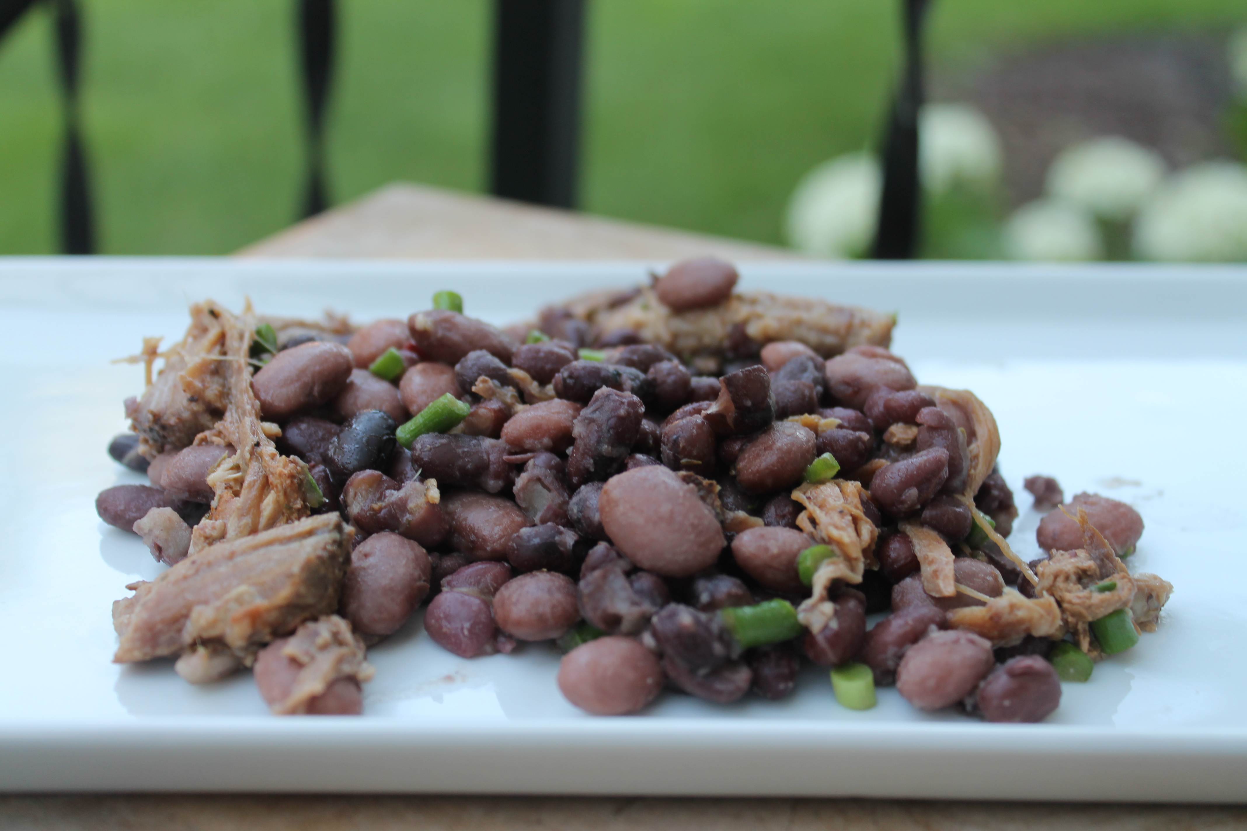 This may sound un-American (and downright rude so close to Independence Day) but I’ve never liked baked beans. I think they are cloyingly sweet. And sticky. And mushy. Instead, this 4th of July I’m dishing up this cold version. I’m using leftover pulled pork, but I imagine any chopped ham will do. And this recipe contains a combination of adzuki, black and pinto beans, but use what you like. This recipe makes enough for a large bowl…feel free to cut it in half.