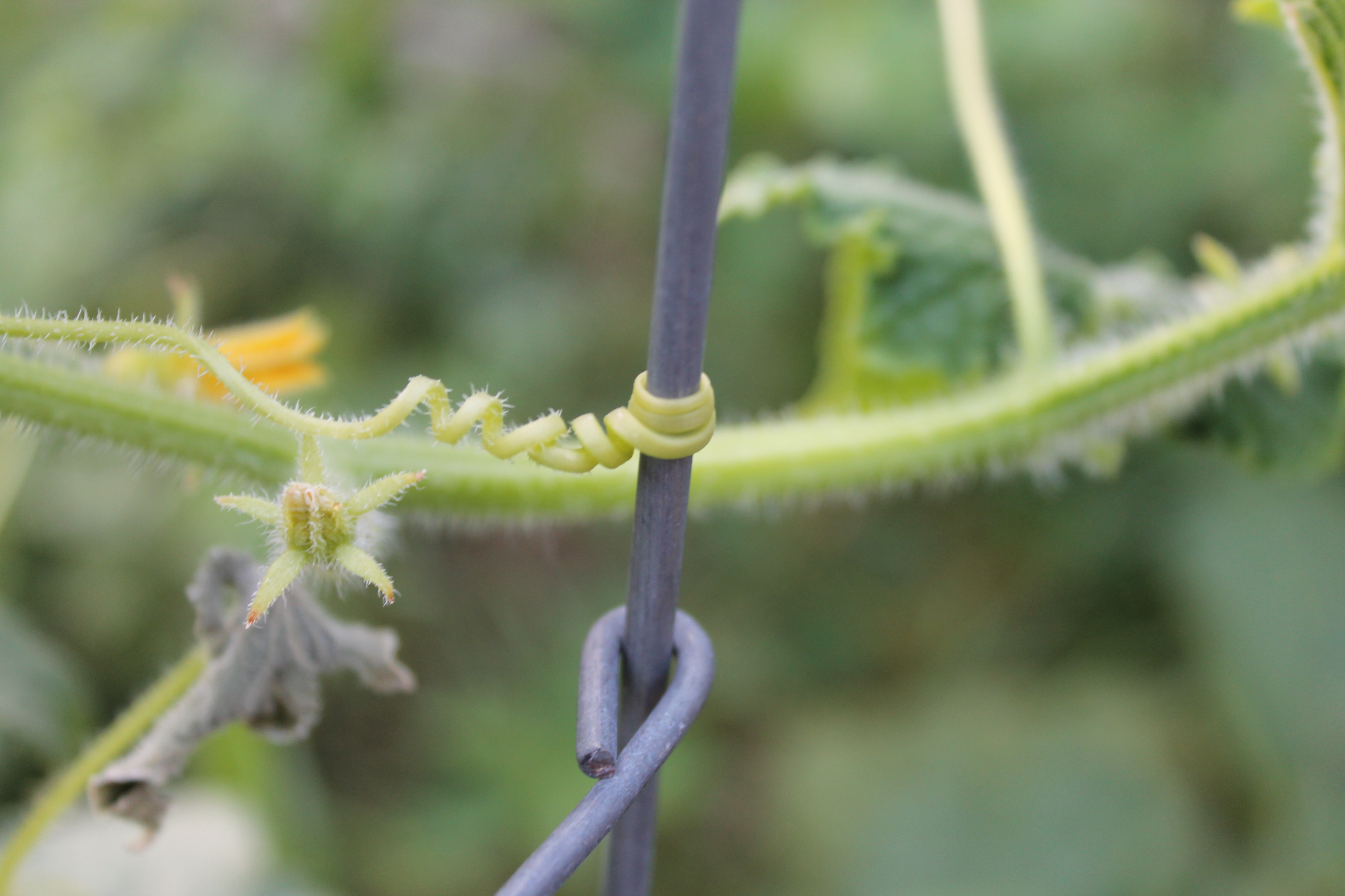 How are cucumber plants so darn smart? This one has a tight grip on it’s cage.