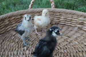 Chickens grow incredibly fast. But they mature slowly at the same time. I’ll explain that contradiction. Today, MaryAnne, Susie Q and Roz are three weeks old. For three weeks, I’ve been adjusting their heat lamp, refilling their food and water containers, and cleaning up poo. Lots of poo. As in, tons of poo.