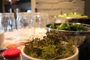 A couple of weeks ago, we went back to EggPlant Urban Farm Supply in St. Paul for a Sunday afternoon canning class. The class focused on tomatoes, but the same principles apply to pickles. Using a water bath canning method, we learned how to sterilize jars, pack them with picked-at-its-peak summer produce, top them with lids, boil them and wait for the gratifying “ping” noise as the jars seal.