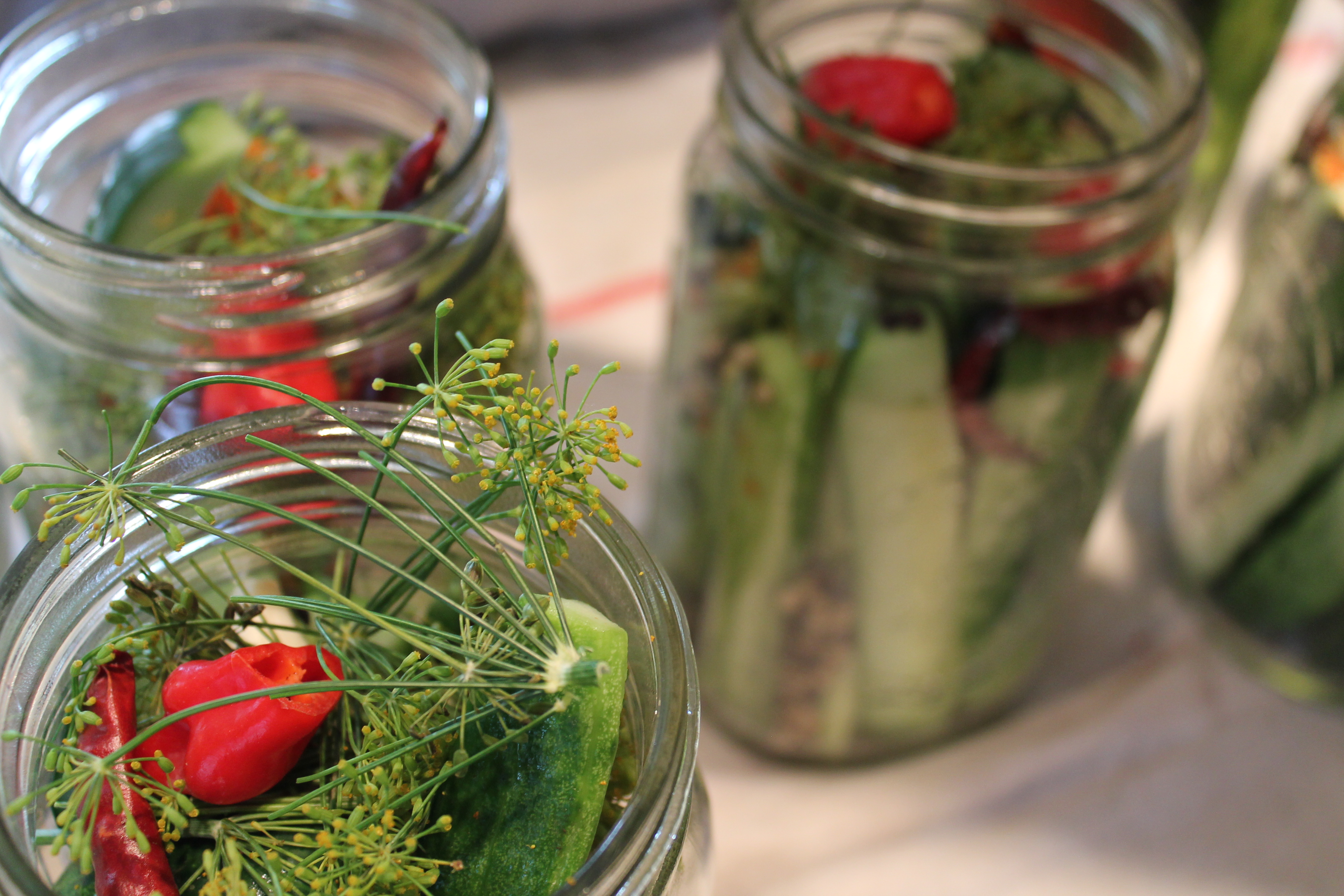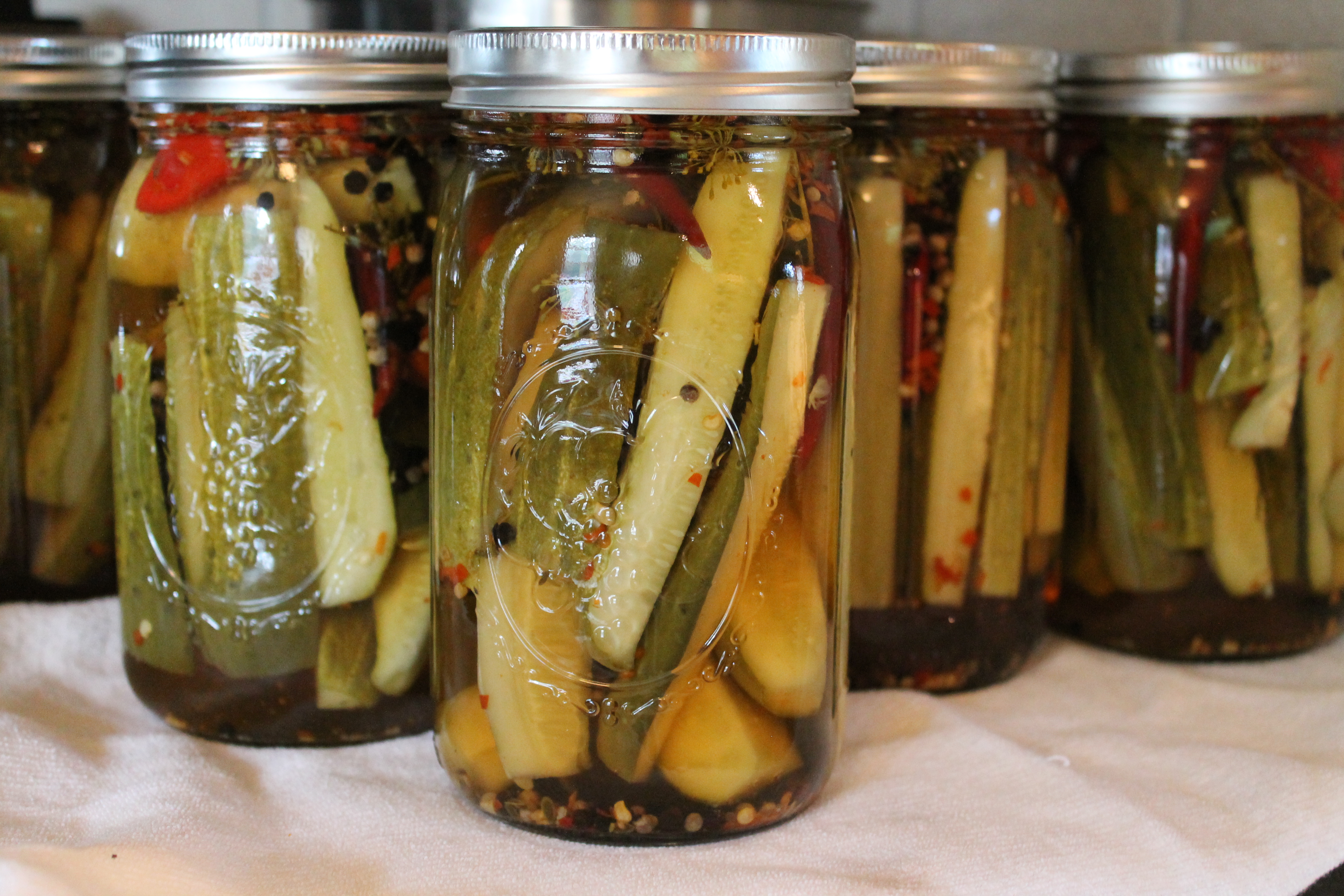 So when I expressed interest in learning how to preserve the summer bounty by canning, Jay was 100% on board and his mind went straight to pickles. Dilly, spicy, crunchy pickles.