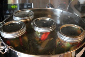 While we’re at it, we decided to try our hand at pickled jalepenos. Jay has childhood memories of the crunchy peppers his best friend’s dad used to make. Every time he buys a jar, what’s inside just doesn’t meet his high expectations.