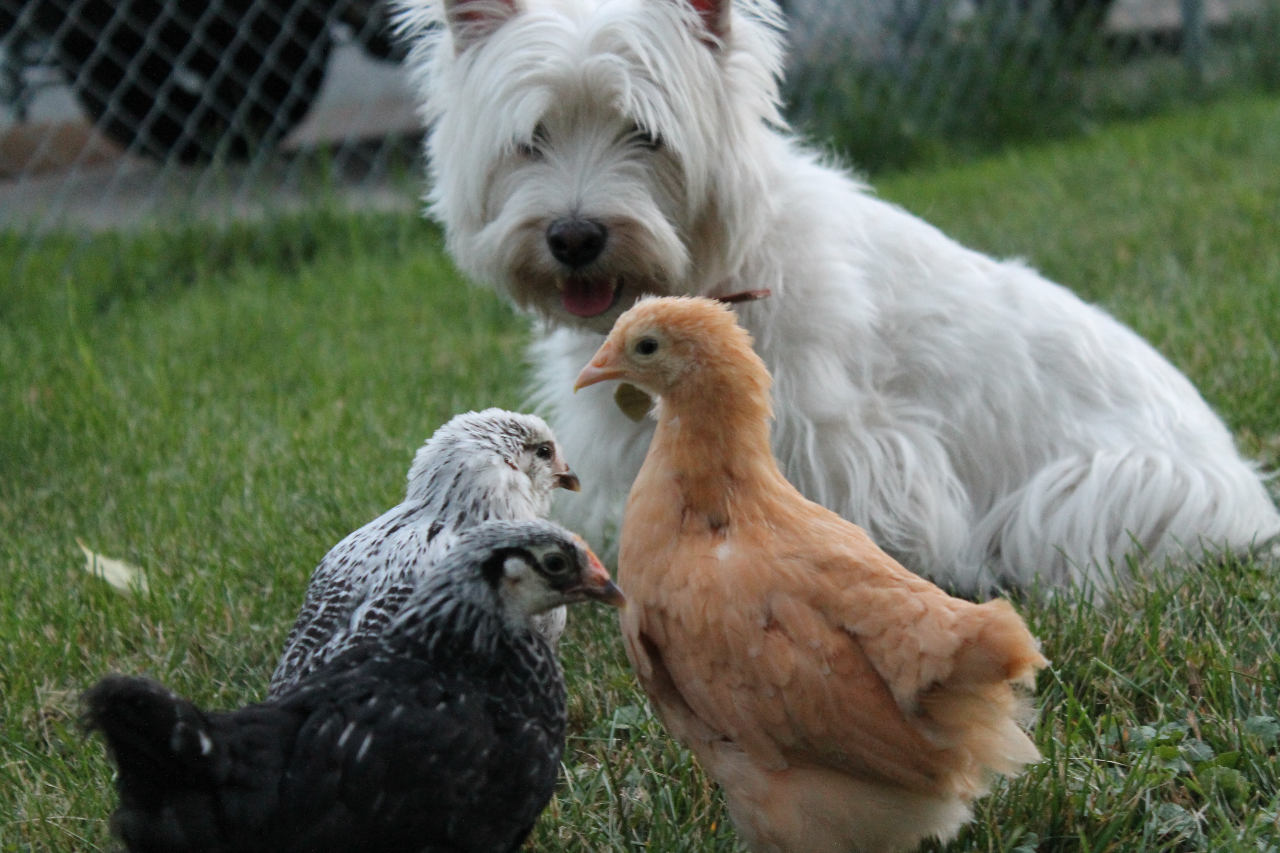 That’s right. Because while the chicks were exploring the lawn outside, there was a frustrated Westie howling inside. He was yelping. And crying. And pathetically begging to get in on the action.