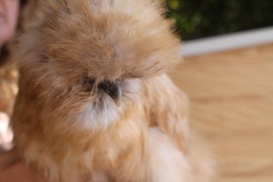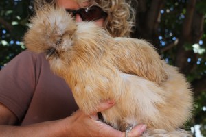 And then, there’s Woodstock. A chicken like none other I’ve ever seen. And not just because Woodstock is a Silkie. The Silkie is a bantam breed, meaning they are smaller than the standard breeds I own.