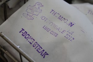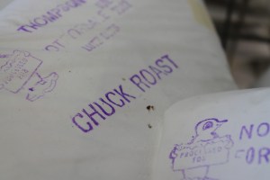 The meat is wrapped in butcher’s paper, stamped by cut and labeled with the customer’s name. The ground beef in these packages comes from one cow, not hundreds of animals ground together in a massive vat and shrink wrapped.