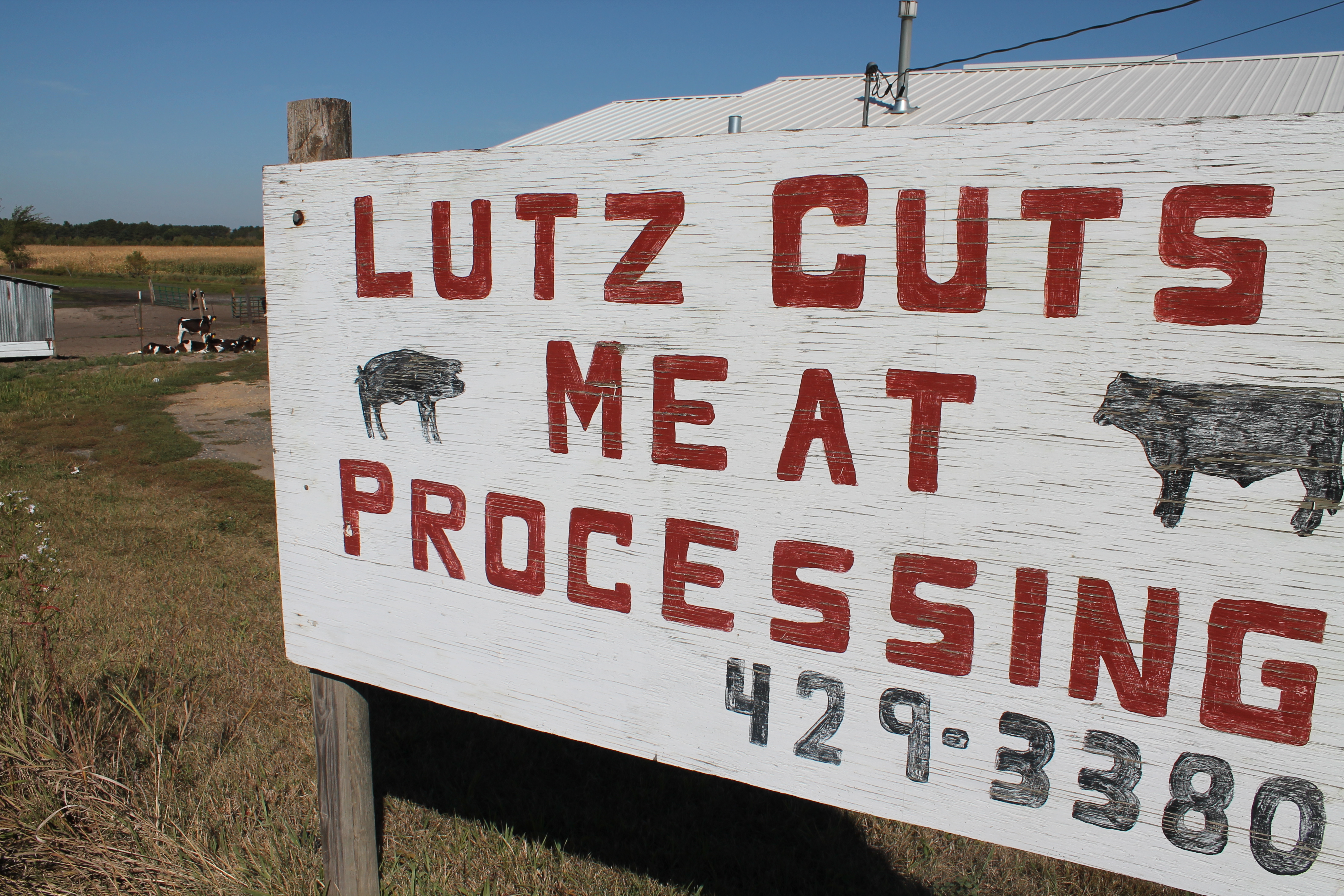 Leo Lutz is the man behind this sign. He showed us where his cows live, just steps from where they are processed into beef to eat. There’s no massive truck hauling the cows to slaughter. There are no terrified cattle being brutally pushed and prodded into an assembly line of death. There aren’t hundreds of slaughterhouse workers forced to work faster and faster with no personal investment in the quality of their product.