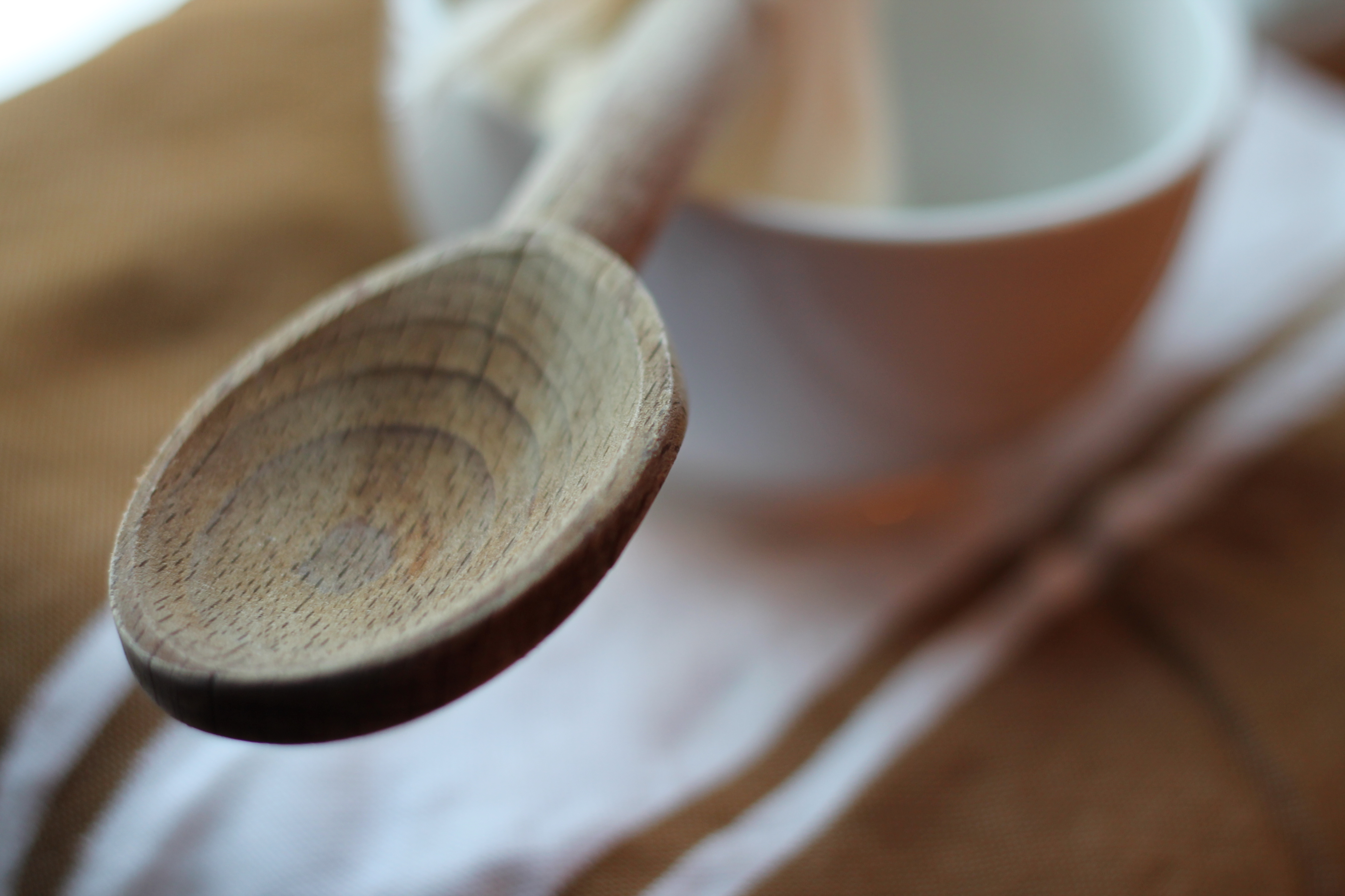 Pull the corners of the cheesecloth up and tie around a wooden spoon.