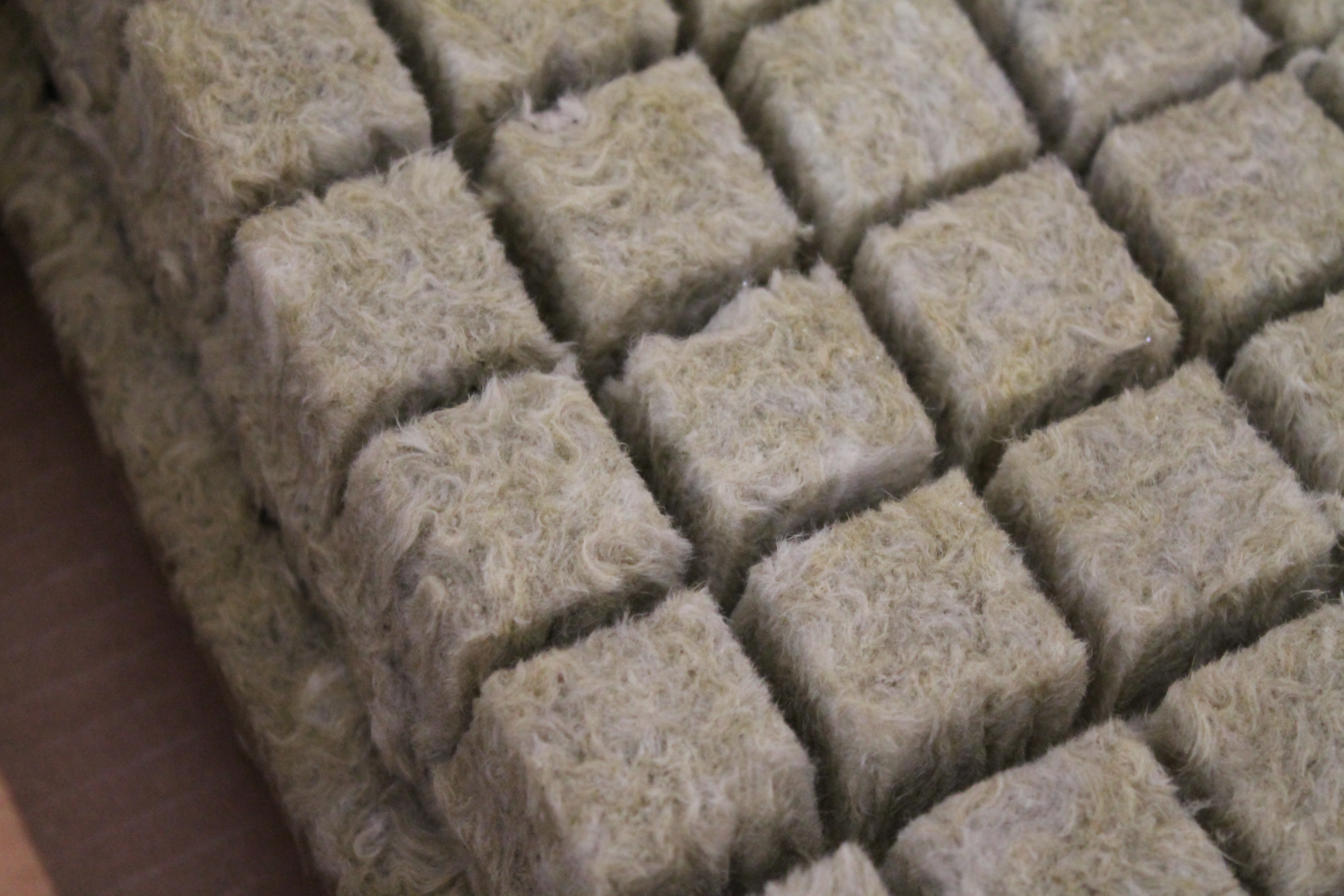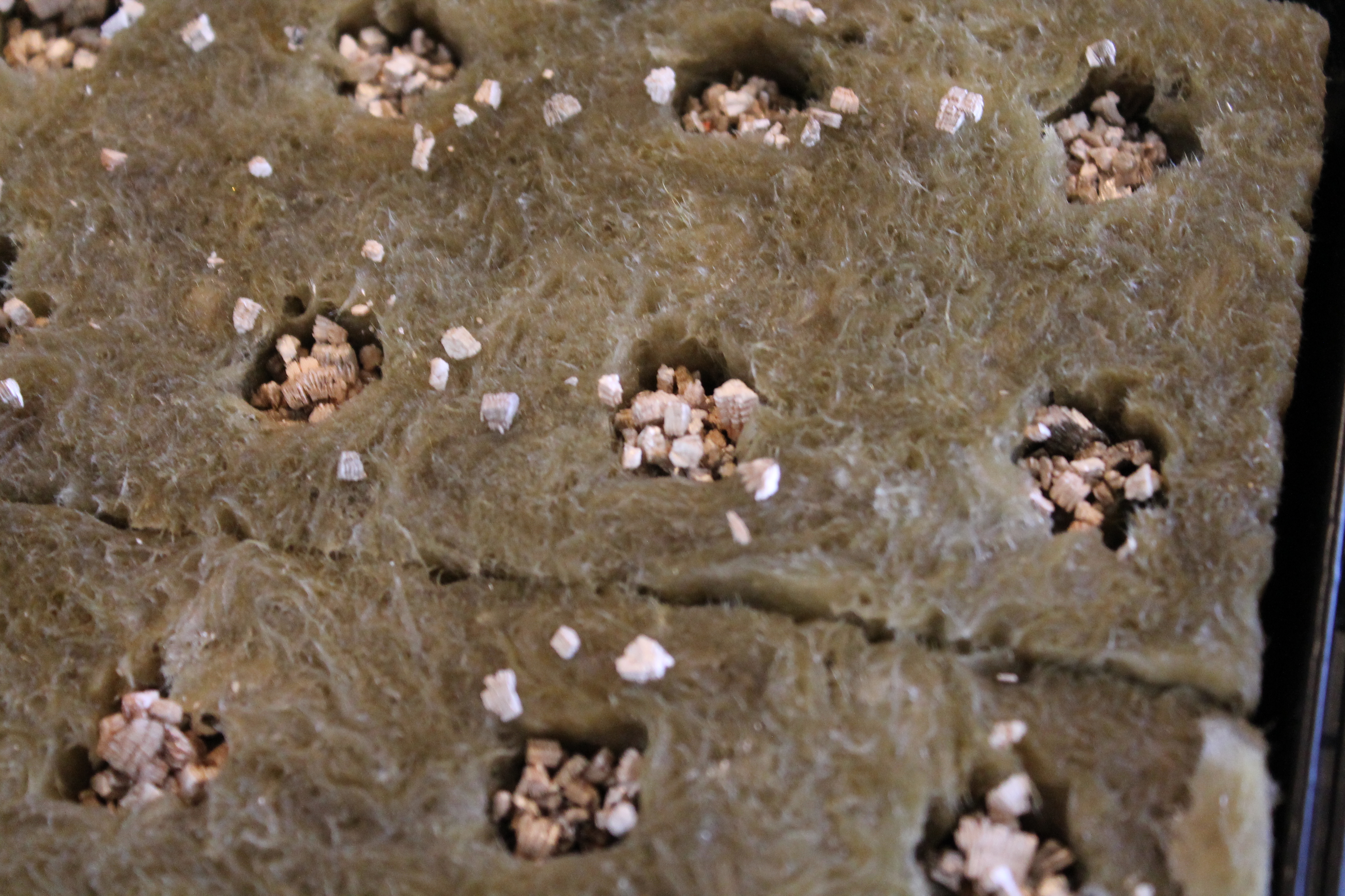 I soaked rows of rock wool sections in water and carefully filled their cavities with seeds.