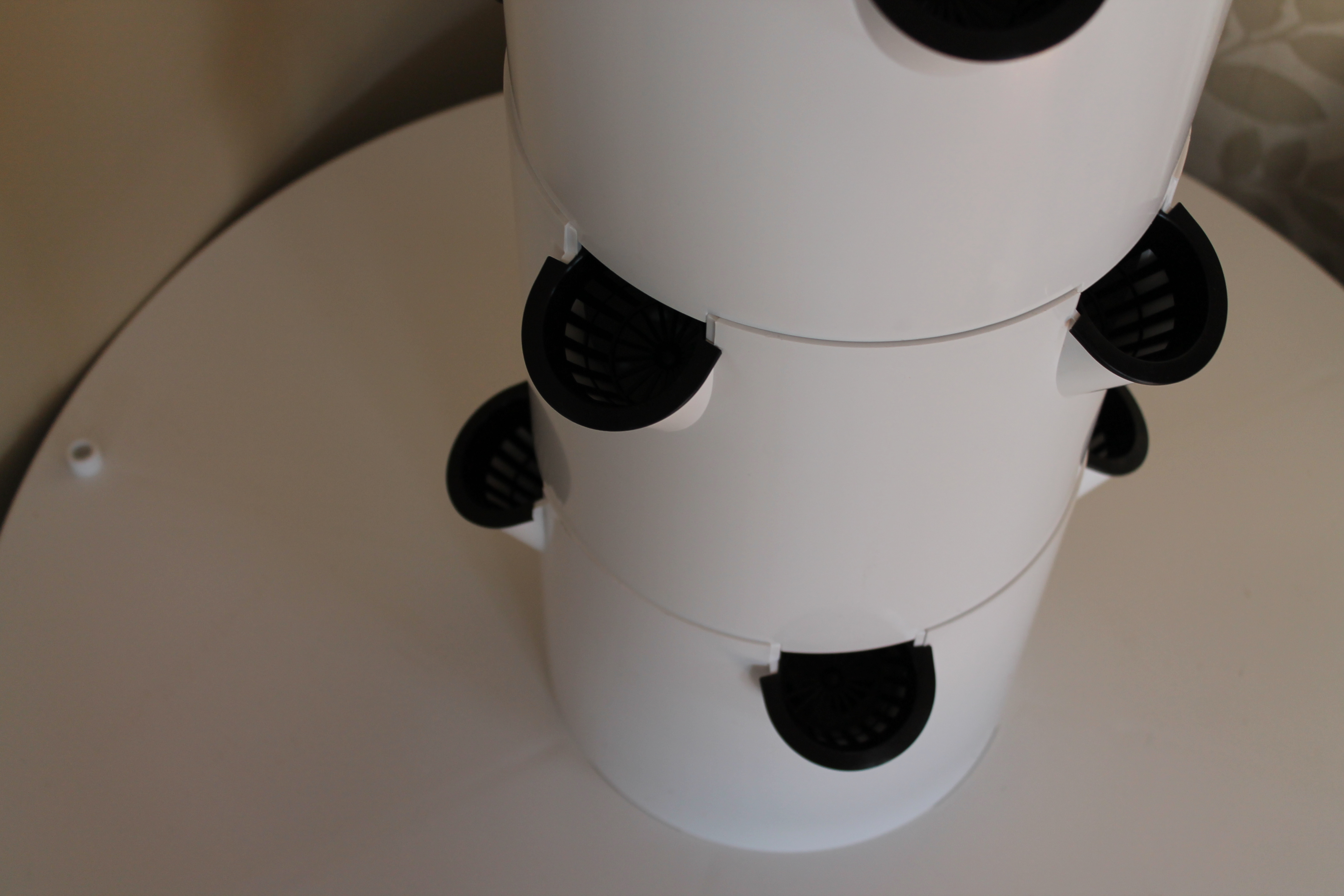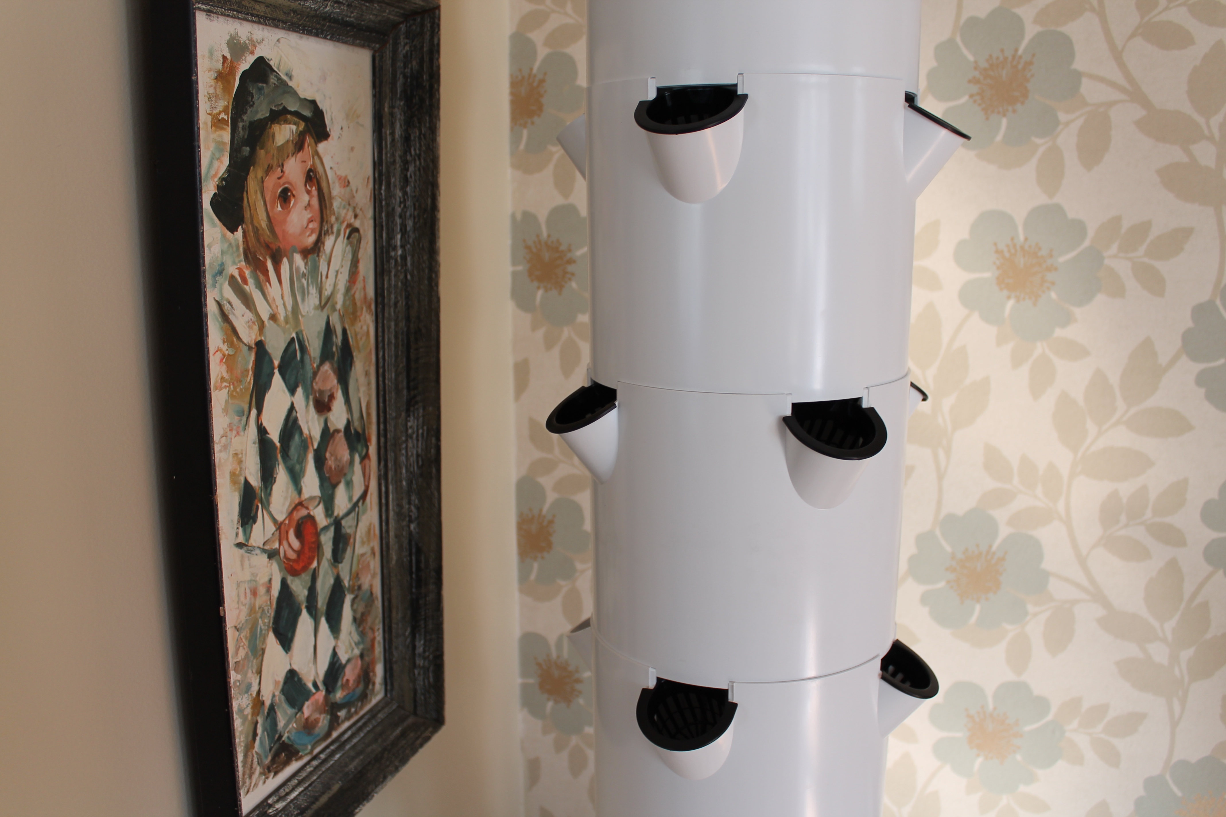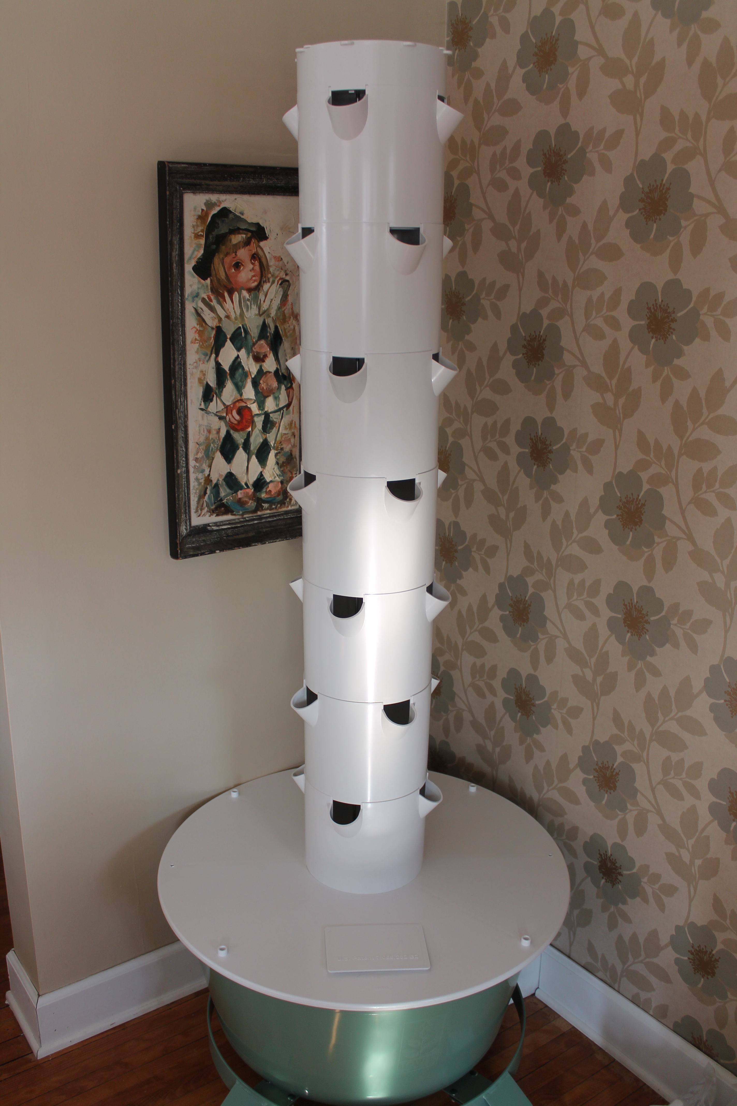 The Tower Garden now lives in my living room. Right now, it looks like a plastic version of a Charlie Brown Christmas tree. Here’s hoping opening all those boxes and putting together the puzzle was worth it!