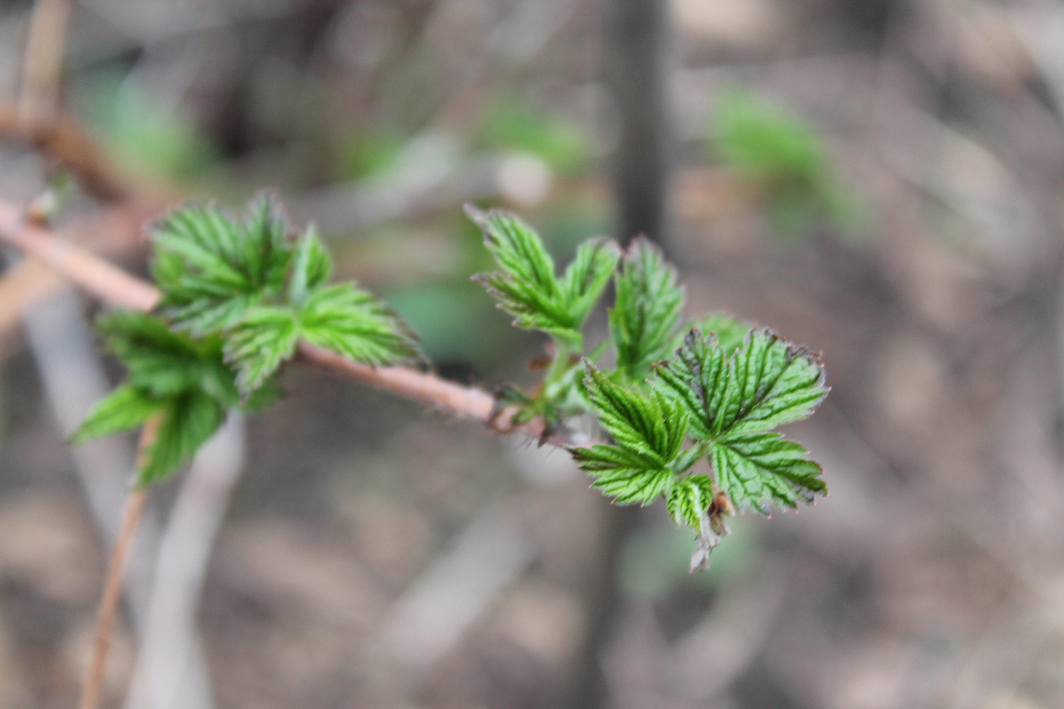 And finally, amidst the old, dry branches that I cut out of my raspberry bushes, leaves are growing on the younger canes and I can’t wait for the sweet and tart red berries to emerge.