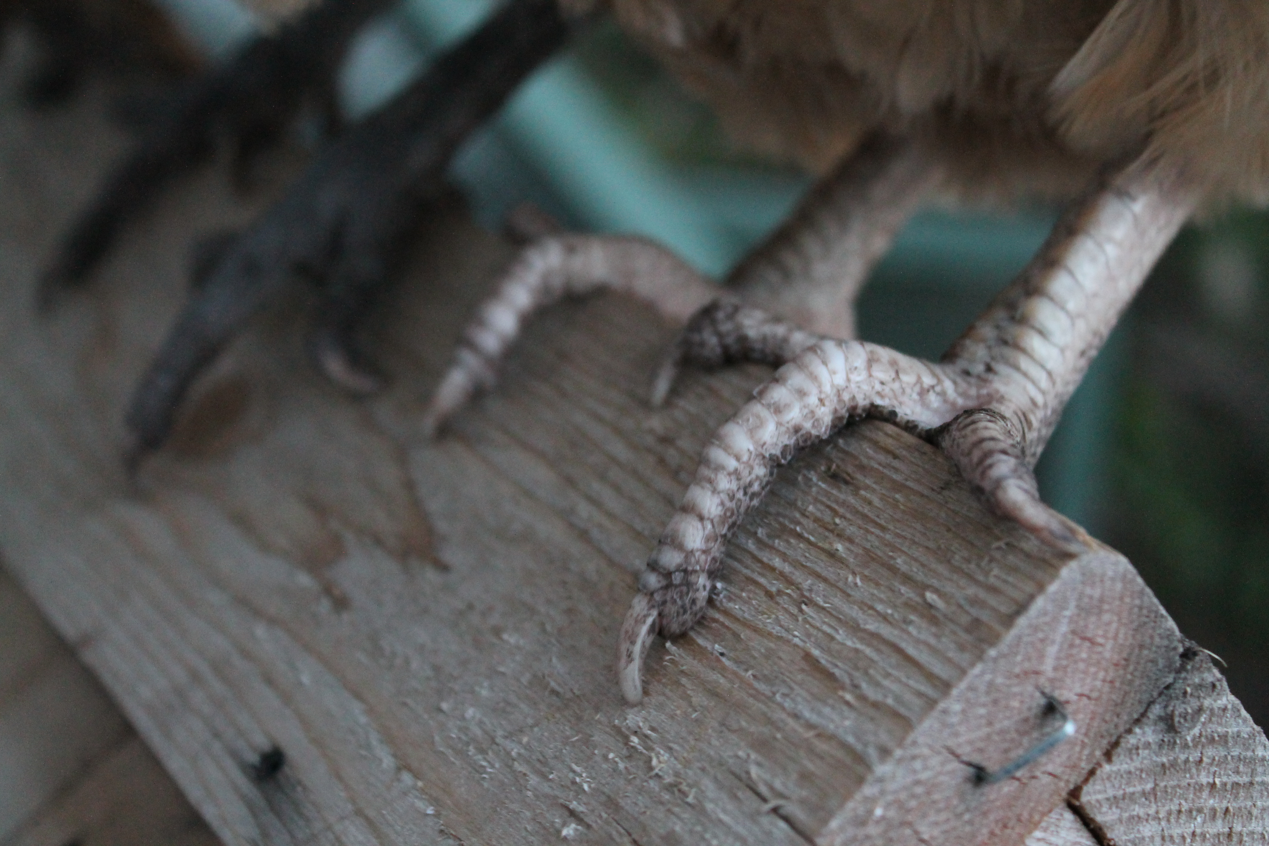 Roz feigns distaste for the situation by getting her wings going as I lower her down into the run.