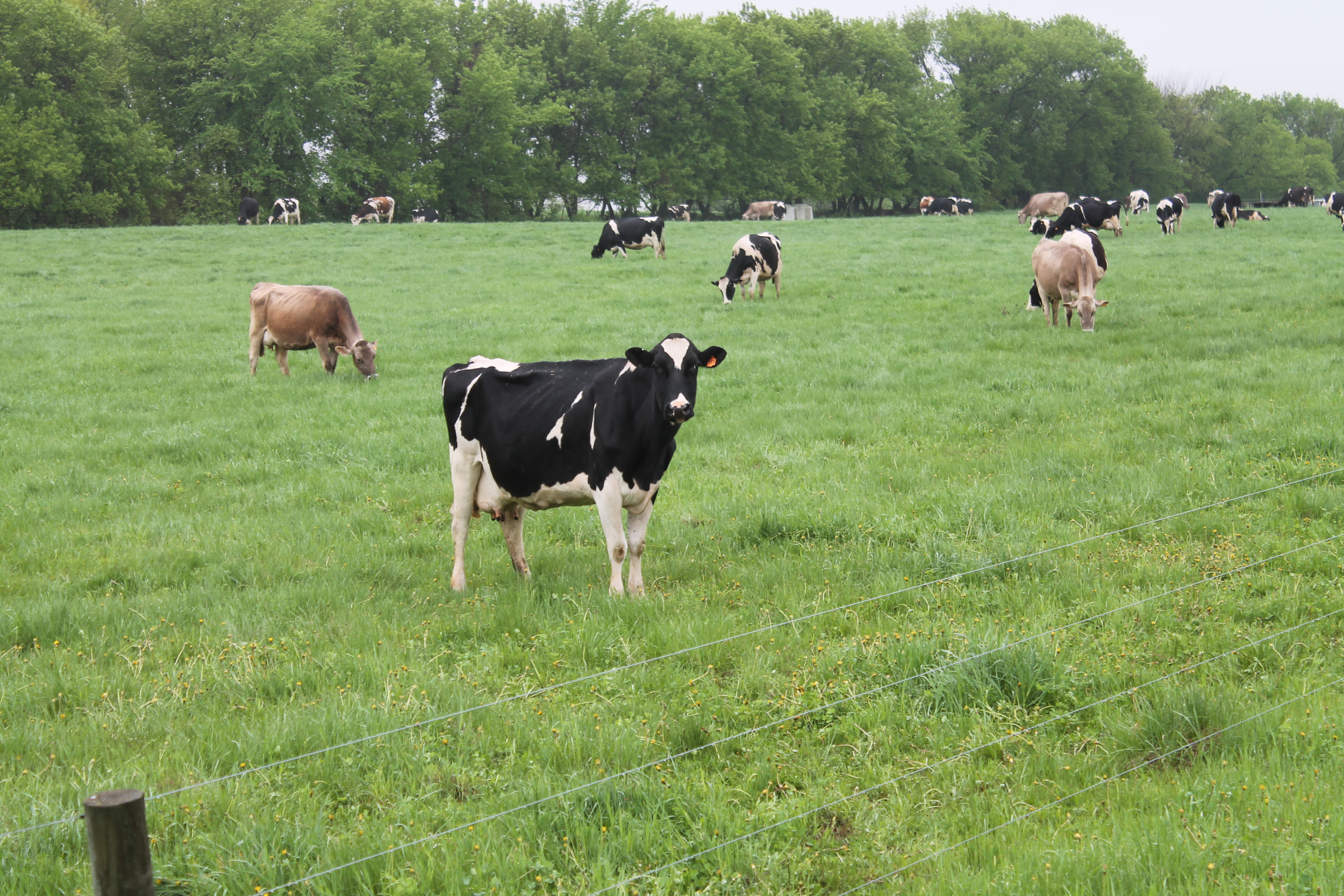 The grass was tall, but not as tall as these farmers would like it to be this time of year. The cows moved slowly through the mist, bobbing their heads up and down as they chewed contentedly.