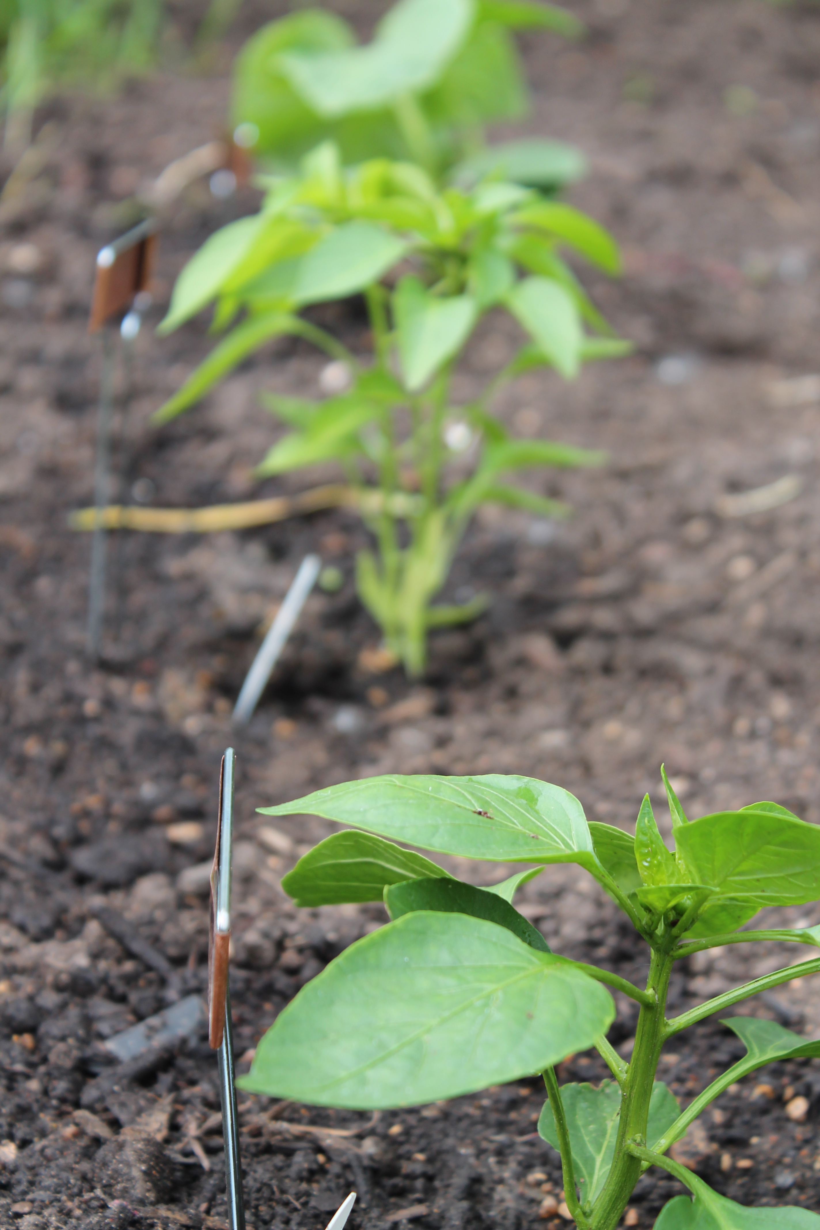purple pepper plantThree kinds of peppers, including the Purple Marconi which promises to deliver a sweet bell pepper with a deep eggplant hue that I can’t wait to taste.