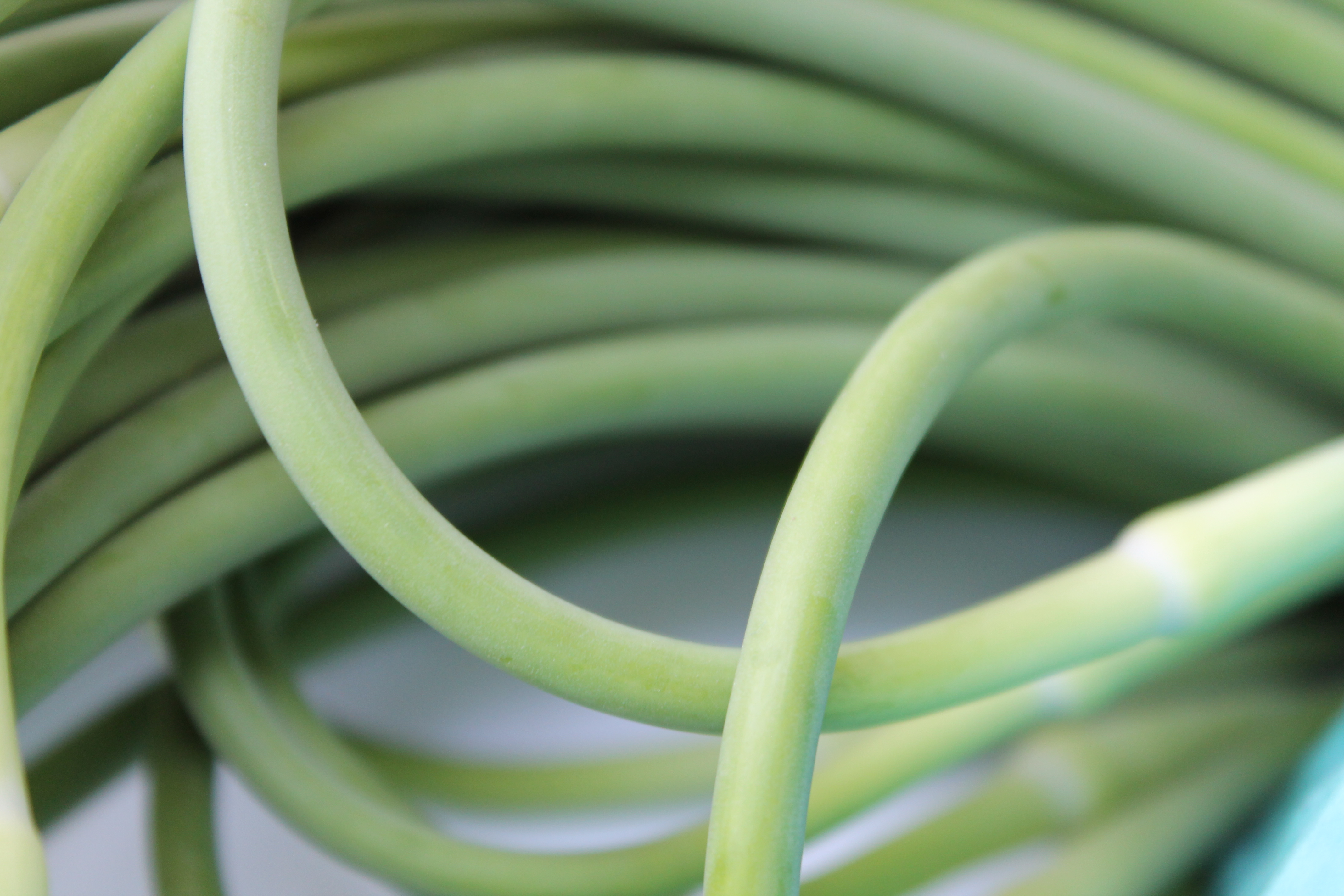 Delicate garlic scapes, chopped up and tossed in just about everything.