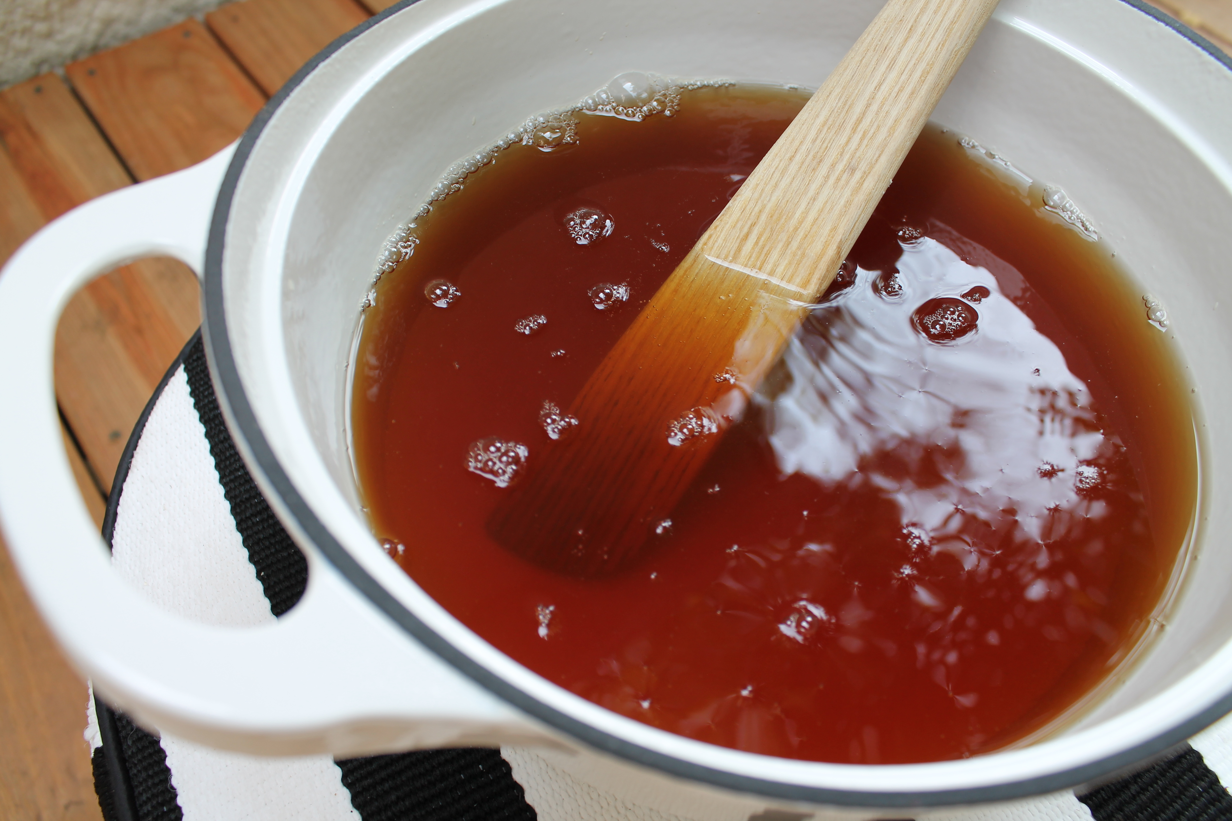 Cover with a cloth. And let it do it’s thing for 14-28 days. When it tastes as tart as you like it, transfer the kombucha to growlers, add flavorings like dried fruits if desired, and pop in the fridge.