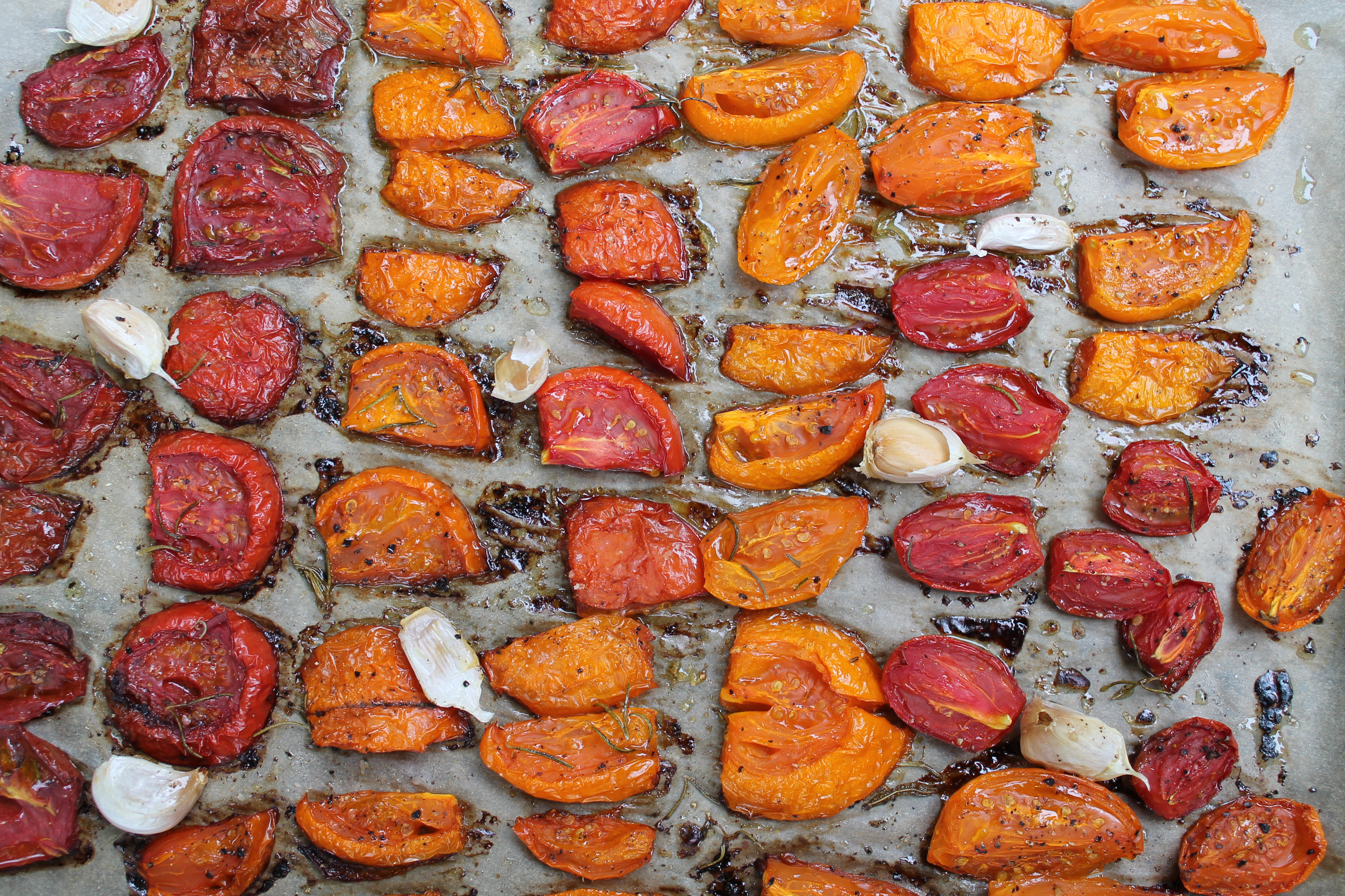 Roast at low heat for several hours. The flavors of the tomatoes will deepen and sweeten and your house will smell like heaven. I feel like that should be a lyric in a country song.