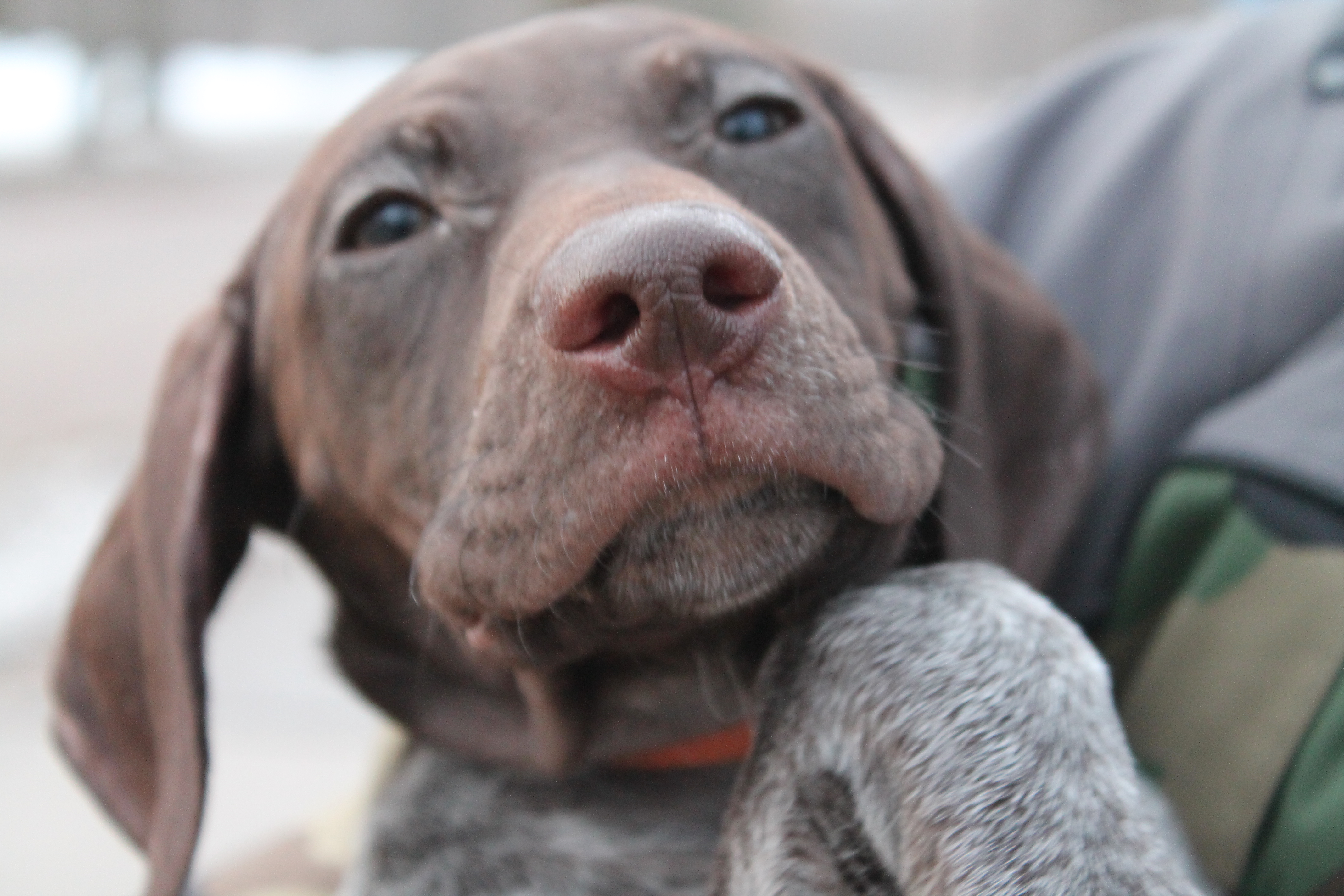 So last week, we adopted a twelve-week old German Shorthaired Pointer. Every muscle in her body is constantly exploring everything around her. She’s beside herself with joy upon each new discovery. She’s sweet. And snuggly.