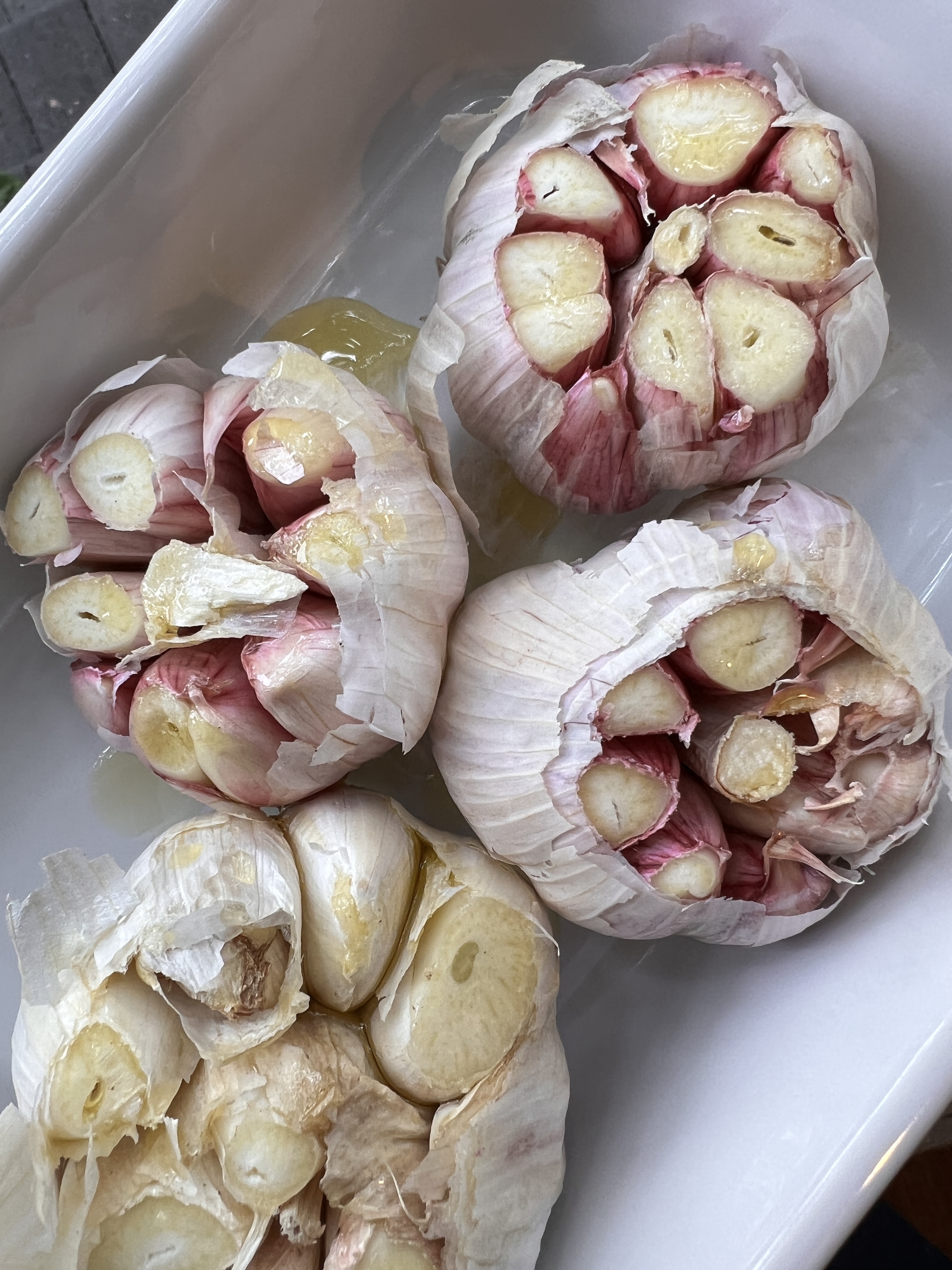 It’s an extra step that’s SO worth it – it gives the dressing depth and some sweetness. Plus, make several bulbs and you can use it in other recipes or just spread on a crostini. Here’s the recipe!