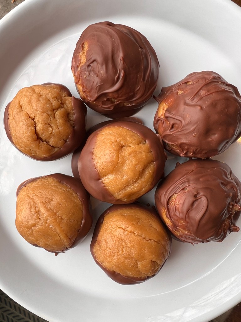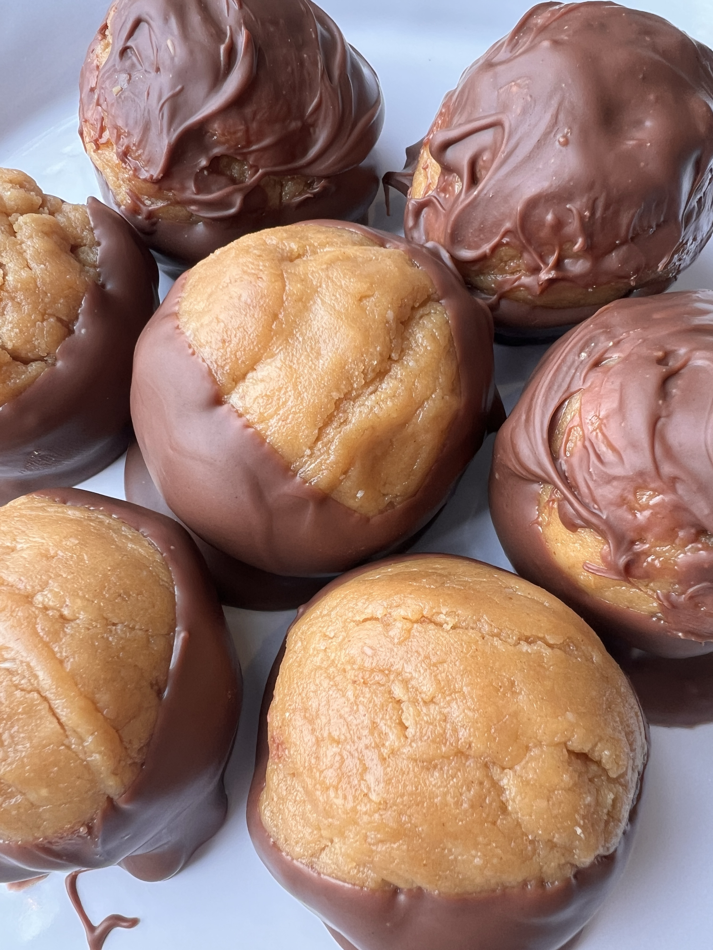 To celebrate – I’m sharing my version of the treat we made growing up: Ries’ Peanut Butter Balls (aka Buckeyes).